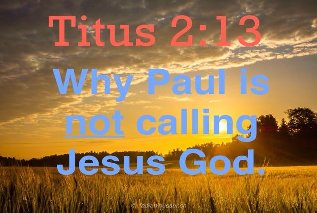 When read carelessly, hoping for a proof-text that Jesus is God, most jump to poor conclusions about Titus 2:13, missing the point of the inspired text completely.